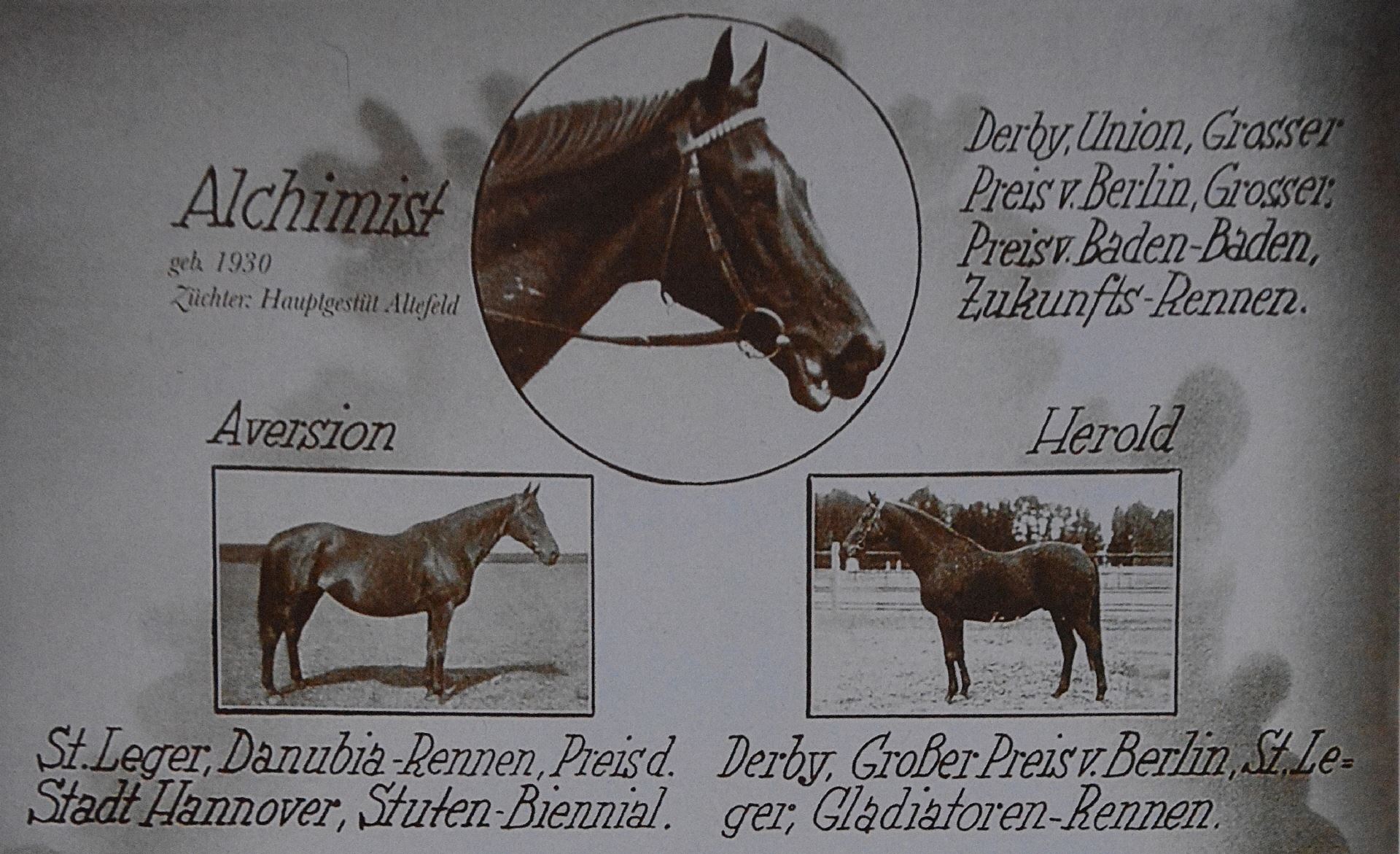 Der erste Altefelder Jahrgang stellte das überragende Dreigestirn Aditi, Marduck und Grossinquisator, dem viele weitere gute Pferde folgten, darunter die überragende Aditja, Antonia, Valladolid, Sichel, Laotse, der Derbysieger Dionys, Viaduct und Lord Nelson. Unter dem letzten in Altefeld geborenen Jahrgang 1930, der in den staatlichen Rennstall kam, war kein geringerer als der Derbysieger.