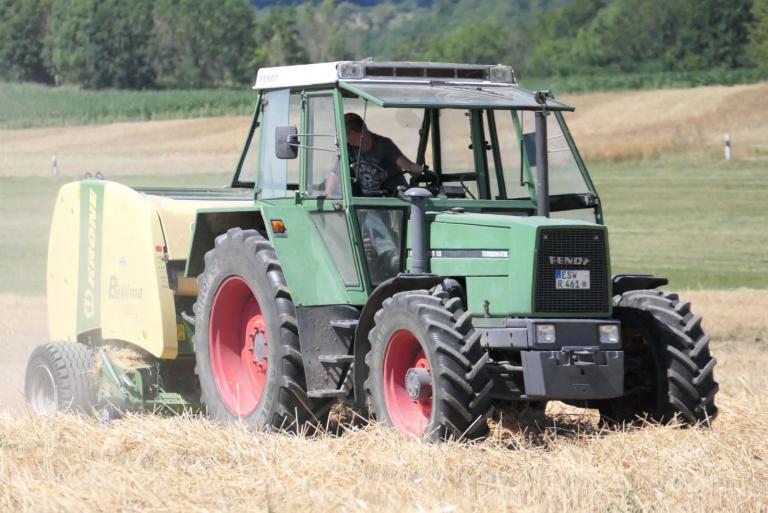Unser schlagkräftiger Maschinenpark ermöglicht eine rasche Bergung der Rundballen, die in unserer großen Raufutterscheune eingelagert werden.