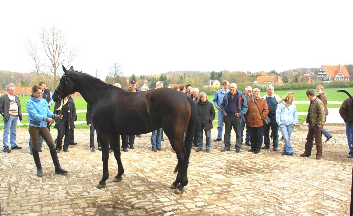 Nach der Begutachtung der Deckhengste "Altefelds Lindbergh" ,"Graf Faedo" und der Bundessiegerstute "Ravenna" standen die Stallbesichtigung und ein kurzer Rundgang um den Alten Hof auf dem Programm.